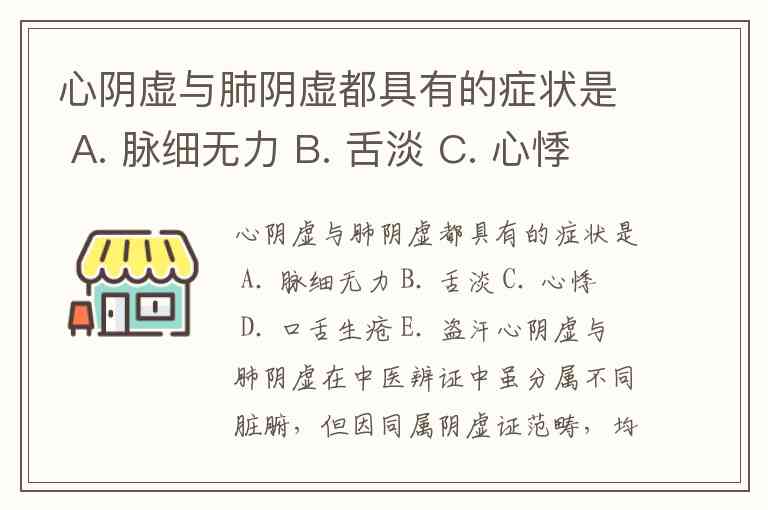 心阴虚与肺阴虚都具有的症状是 A. 脉细无力 B. 舌淡 C. 心悸 D. 口舌生疮 E. 盗汗