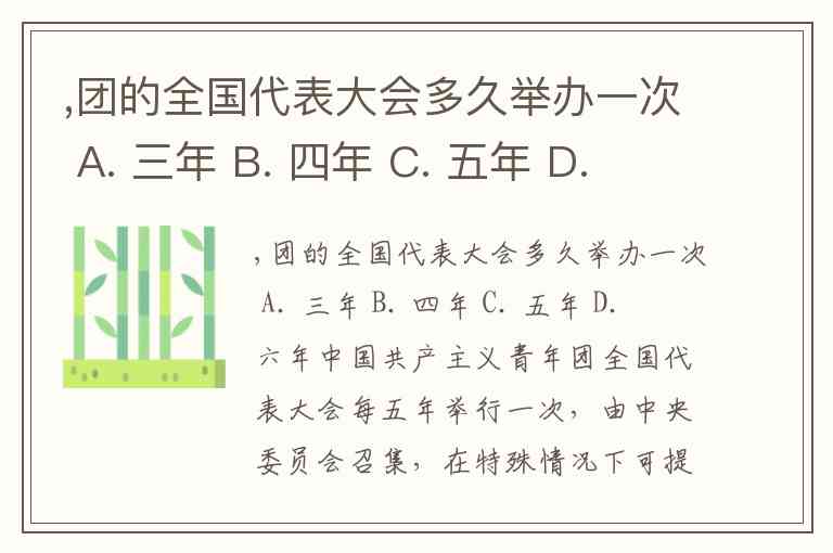 ,团的全国代表大会多久举办一次 A. 三年 B. 四年 C. 五年 D. 六年