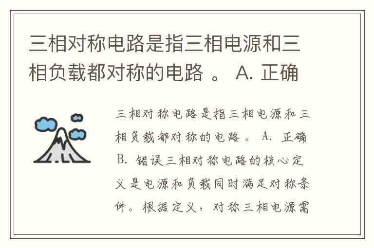 三相对称电路是指三相电源和三相负载都对称的电路 。 A. 正确 B. 错误