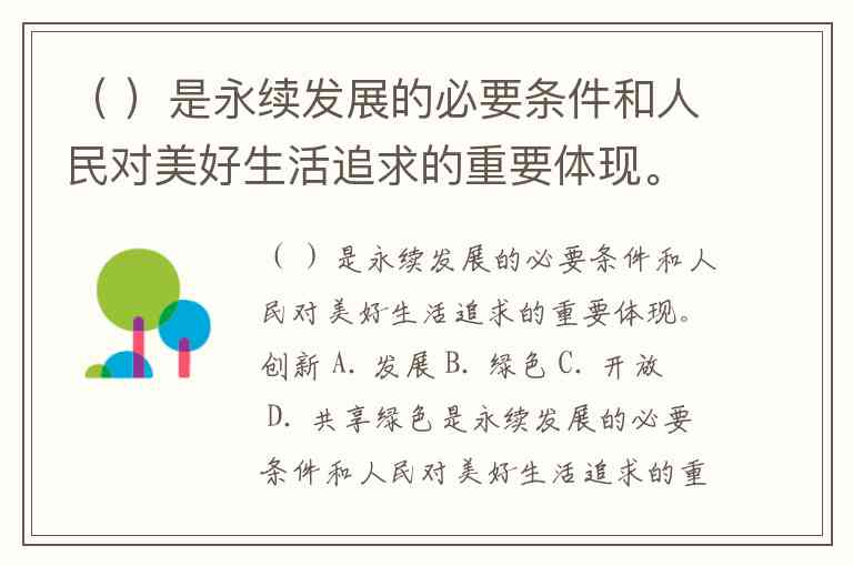 ( )是永续发展的必要条件和人民对美好生活追求的重要体现。创新 A. 发展 B. 绿色 C. 开放 D. 共享