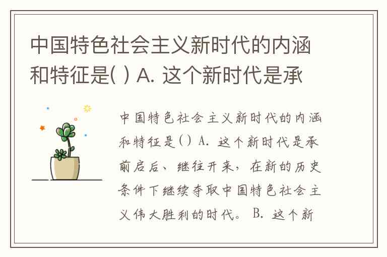 中国特色社会主义新时代的内涵和特征是( ) A. 这个新时代是承前启后、继往开来,在新的历史条件下继续夺取中国特色社会主义伟大胜利的时代。 B. 这个新时代是决胜全面建成小康社会、进而全面建设社会主义现代化强国的时代。 C. 这个新时代是全国各族人民团结奋斗、不断创造美好生活、逐步实现全体人民共同富裕的时代。 D. 这个新时代是全体中华儿女勠力同心、奋力实现中华民族伟大复兴中国梦的时代。