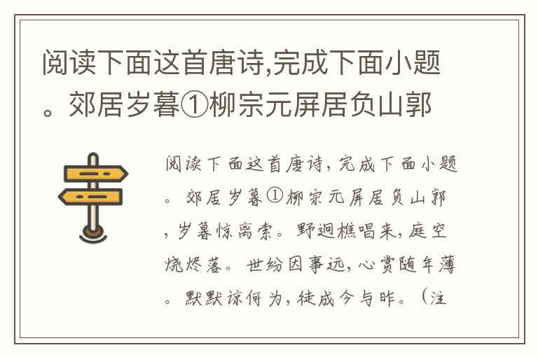 阅读下面这首唐诗,完成下面小题。郊居岁暮①柳宗元屏居负山郭,岁暮惊离索。野迥樵唱来,庭空烧烬落。世纷因事远,心赏随年薄。默默谅何为,徒成今与昨。(注释)①此诗作于元和十年冬,是柳宗元贬居永州时期的作品。1)下列对这首诗的赏析,不正确的一项是 A. 诗的首联点题,交代了写诗的环境、时间以及因“离索”而“惊”的情绪变化。 B. 颔联紧扣“野”字,“庭空烧烬落”是说野火的灰烬飘落在空旷的庭院之中。 C. 尾联写出了诗人的情态,在“今与昨”也就是过去和现在,都是在“默默”中度过的。 D. 全诗的前四句重在描写景物,后四句重在议论抒情,景、情融为一体,浑然天成。