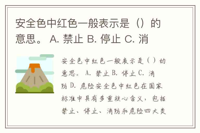 安全色中红色一般表示是()的意思。 A. 禁止 B. 停止 C. 消防 D. 危险