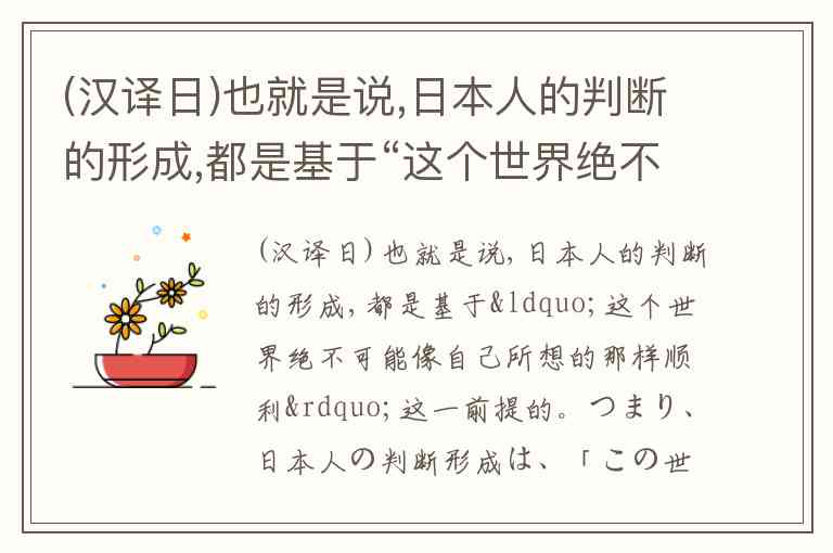 (汉译日)也就是说,日本人的判断的形成,都是基于“这个世界绝不可能像自己所想的那样顺利”这一前提的。
