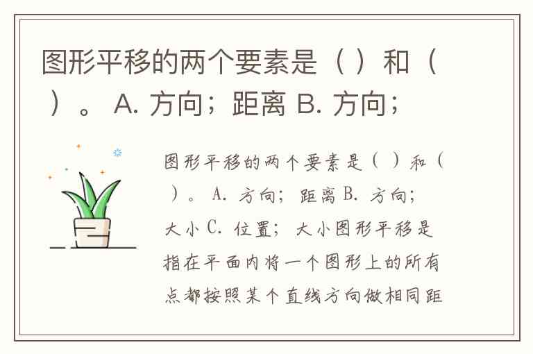 图形平移的两个要素是( )和( )。 A. 方向;距离 B. 方向;大小 C. 位置;大小