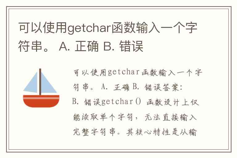 可以使用getchar函数输入一个字符串。 A. 正确 B. 错误
