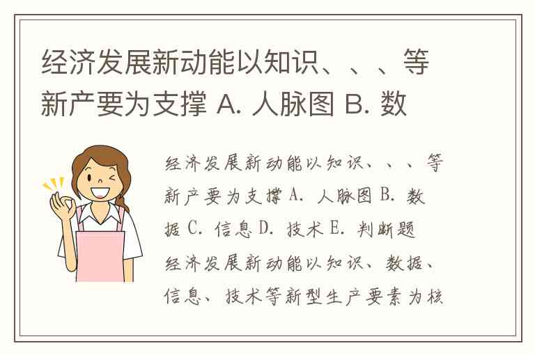 经济发展新动能以知识、、、等新产要为支撑 A. 人脉图 B. 数据 C. 信息 D. 技术 E. 判断题