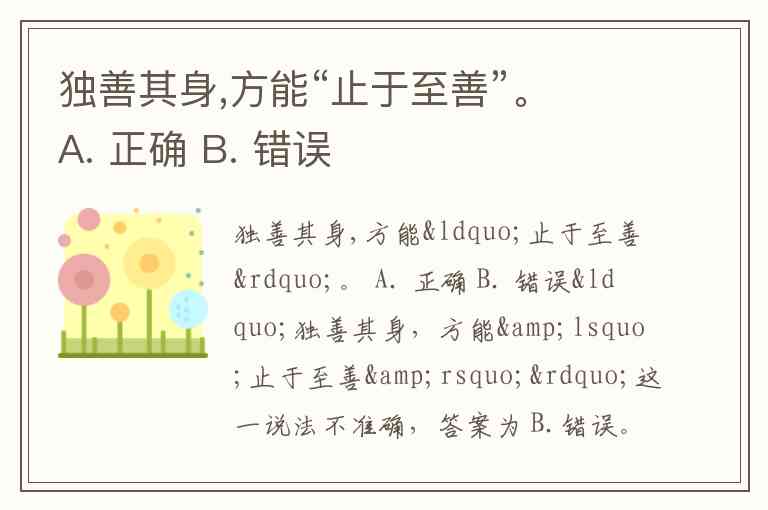 “独善其身,方能‘止于至善’”这一说法不准确,答案为 B.错误。