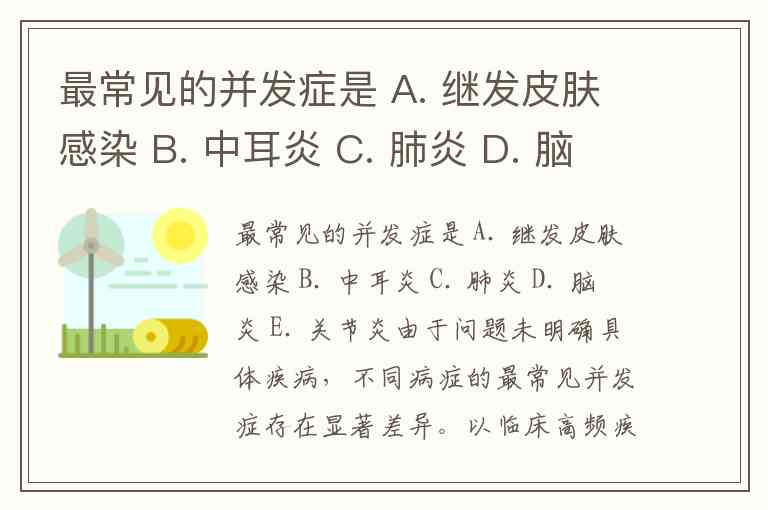 最常见的并发症是 A. 继发皮肤感染 B. 中耳炎 C. 肺炎 D. 脑炎 E. 关节炎