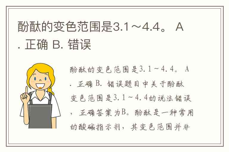 酚酞的变色范围是3.1~4.4。 A. 正确 B. 错误