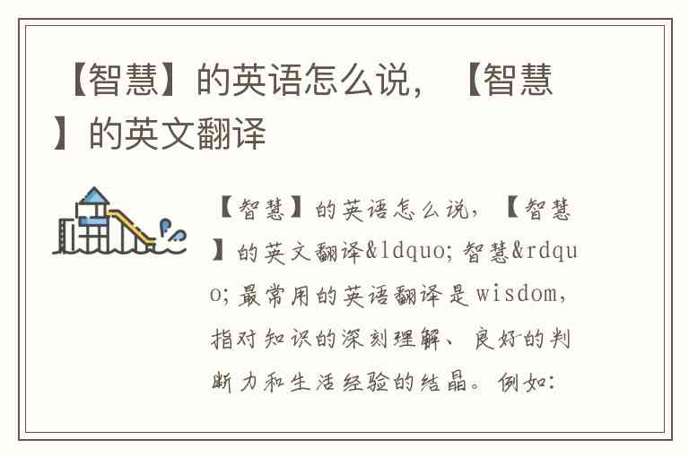 “智慧”最常用的英语翻译是 wisdom,指对知识的深刻理解、良好的判断力和生活经验的结晶。例如:“The old man shared his wisdom about life.”(老人分享了他对生活的智慧。)