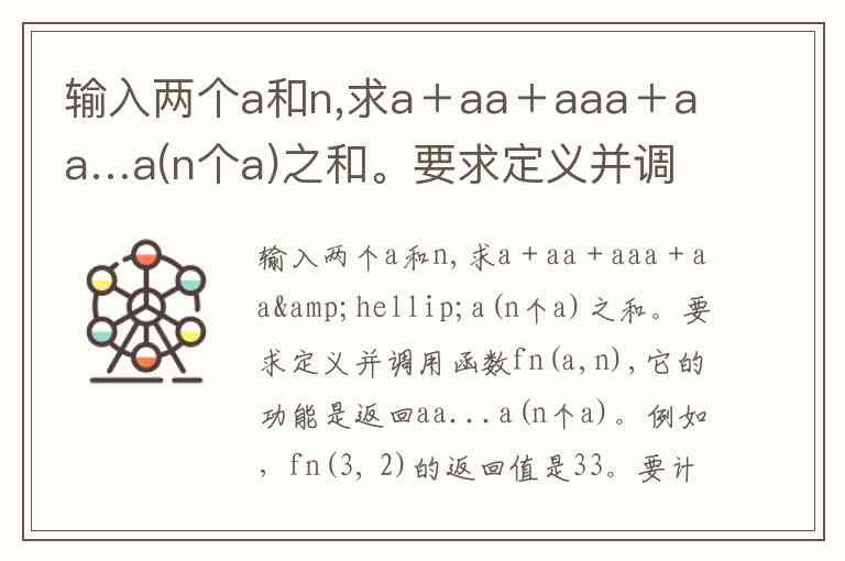 输入两个a和n,求a+aa+aaa+aa…a(n个a)之和。要求定义并调用函数fn(a,n),它的功能是返回aa...a(n个a)。例如,fn(3, 2)的返回值是33。