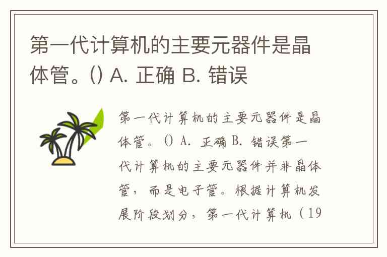 第一代计算机的主要元器件是晶体管。() A. 正确 B. 错误