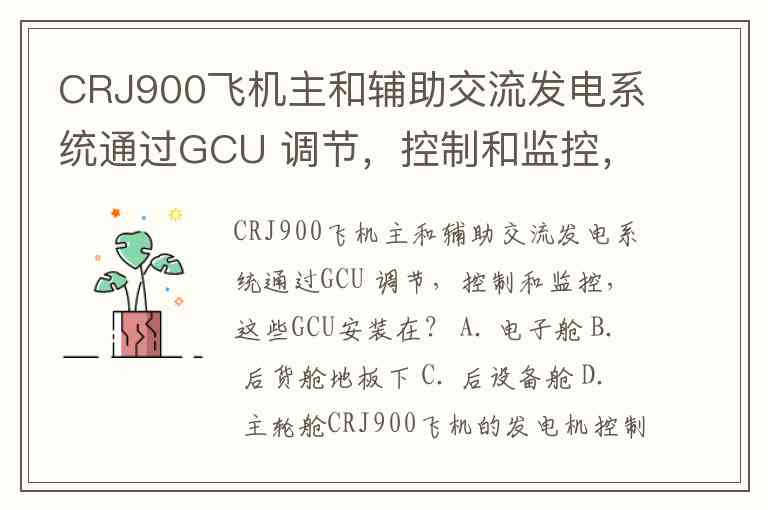 CRJ900飞机主和辅助交流发电系统通过GCU 调节,控制和监控,这些GCU安装在? A. 电子舱 B. 后货舱地板下 C. 后设备舱 D. 主轮舱