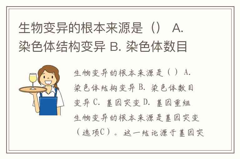生物变异的根本来源是基因突变(选项C)。这一结论源于基因突变在遗传变异中的核心地位:它是唯一能产生新基因的变异方式,为生物进化提供原始材料。其他变异类型如染色体结构变异、染色体数目变异和基因重组,本质上都是对现有基因的重新排列或数量改变,无法创造全新的遗传信息。