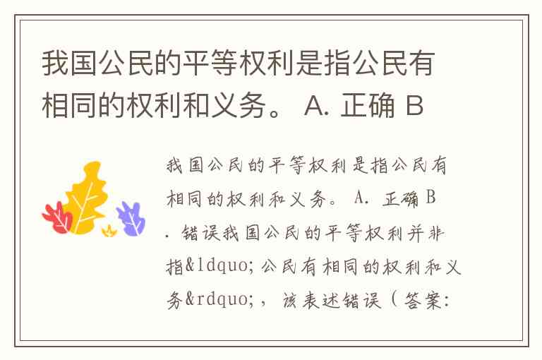 我国公民的平等权利是指公民有相同的权利和义务。 A. 正确 B. 错误