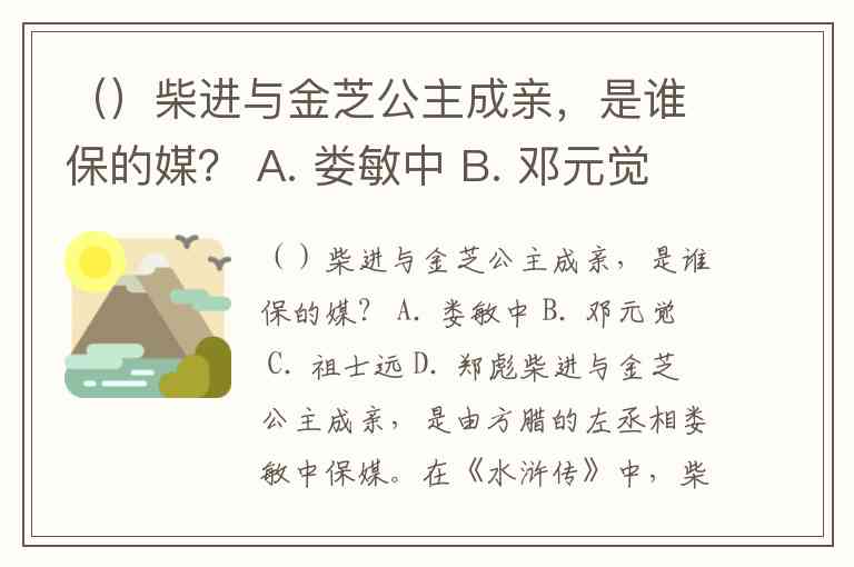 ()柴进与金芝公主成亲,是谁保的媒? A. 娄敏中 B. 邓元觉 C. 祖士远 D. 郑彪
