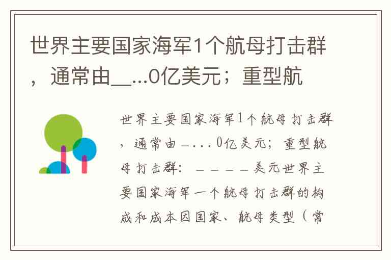 世界主要国家海军1个航母打击群,通常由_...0亿美元;重型航母打击群:____美元