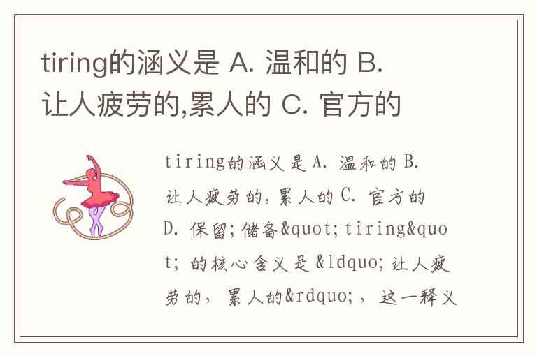 tiring的涵义是 A. 温和的 B. 让人疲劳的,累人的 C. 官方的 D. 保留;储备