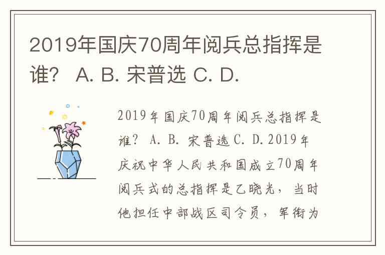 2019年国庆70周年阅兵总指挥是谁? A. B. 宋普选 C. D.