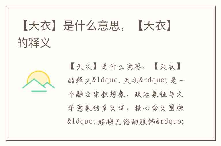 “天衣”是一个融合宗教想象、政治象征与文学意象的多义词,核心含义围绕“超越凡俗的服饰”展开,在不同语境中呈现出丰富层次。