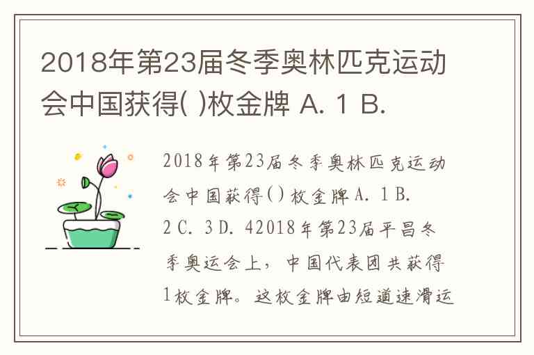 2018年第23届冬季奥林匹克运动会中国获得( )枚金牌 A. 1 B. 2 C. 3 D. 4