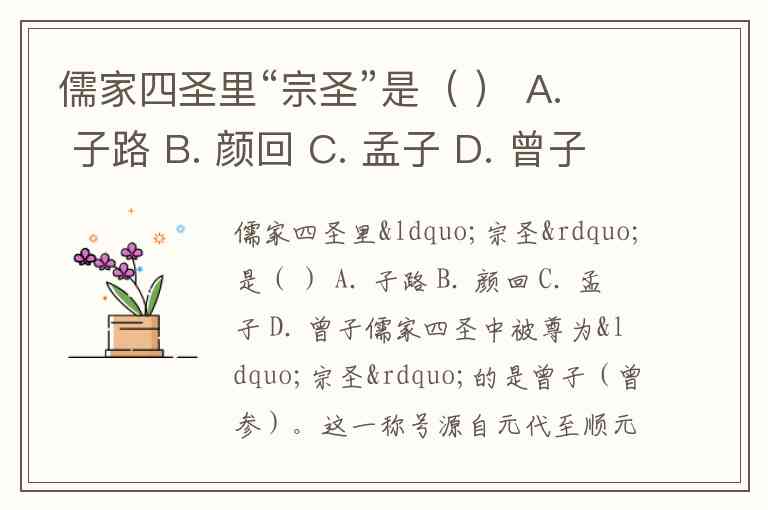 儒家四圣里“宗圣”是( ) A. 子路 B. 颜回 C. 孟子 D. 曾子