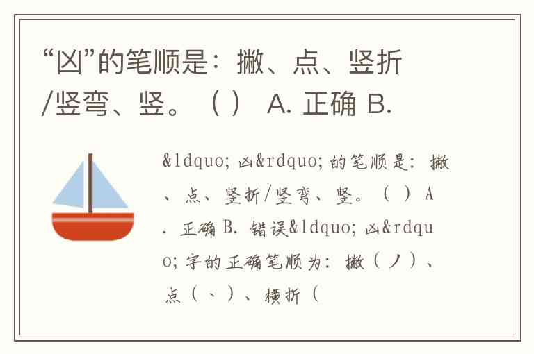 “凶”的笔顺是:撇、点、竖折/竖弯、竖。( ) A. 正确 B. 错误