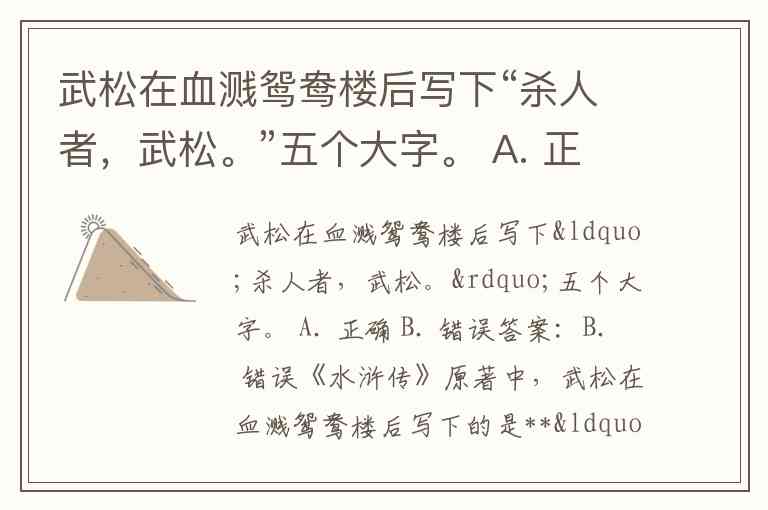 武松在血溅鸳鸯楼后写下“杀人者,武松。”五个大字。 A. 正确 B. 错误