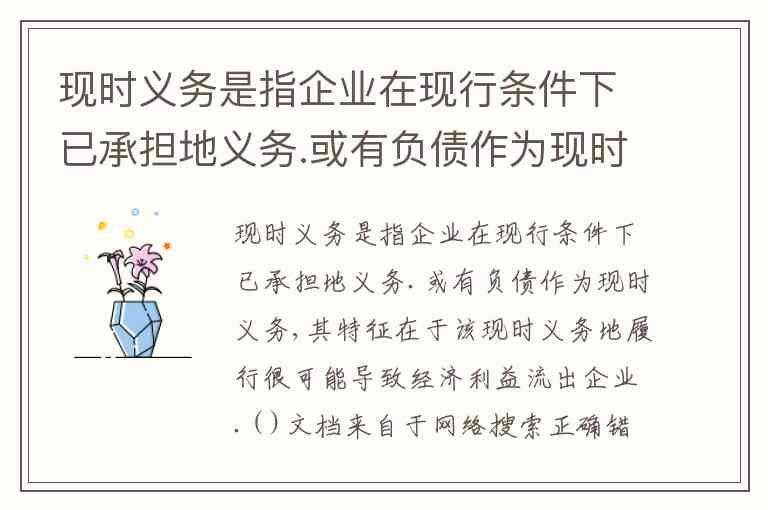 现时义务是指企业在现行条件下已承担地义务.或有负债作为现时义务,其特征在于该现时义务地履行很可能导致经济利益流出企业.( )文档来自于网络搜索正确错误10.企业应当在资产负债表日对预计负债地账面价值进行复核,如果有确凿证据表明该账面价值不能真实反映当前最佳估计数,应当按照当前最佳估计文档来自于网络搜索数对该账面价值进行调整.( )正确 A. 正确 B. 错误
