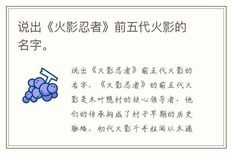 说出《火影忍者》前五代火影的名字。