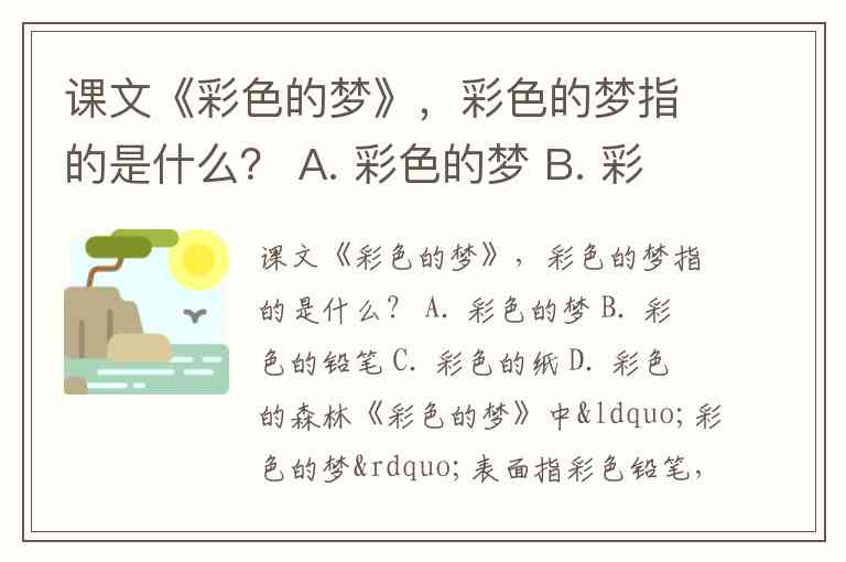 课文《彩色的梦》,彩色的梦指的是什么? A. 彩色的梦 B. 彩色的铅笔 C. 彩色的纸 D. 彩色的森林