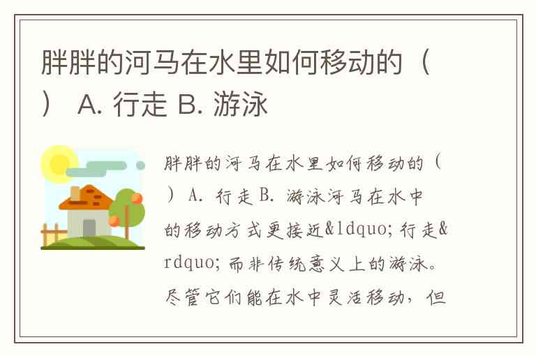 胖胖的河马在水里如何移动的() A. 行走 B. 游泳