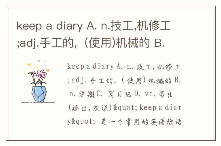 keep a diary A. n.技工,机修工;adj.手工的,(使用)机械的 B. n.学期 C. 写日记 D. vt.寄出(逐出,欢送)