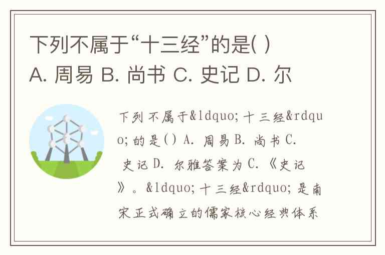 下列不属于“十三经”的是( ) A. 周易 B. 尚书 C. 史记 D. 尔雅