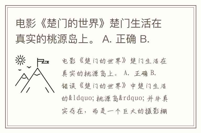 电影《楚门的世界》楚门生活在真实的桃源岛上。 A. 正确 B. 错误