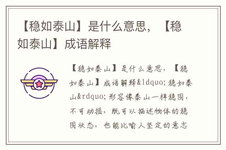 【稳如泰山】是什么意思,【稳如泰山】成语解释