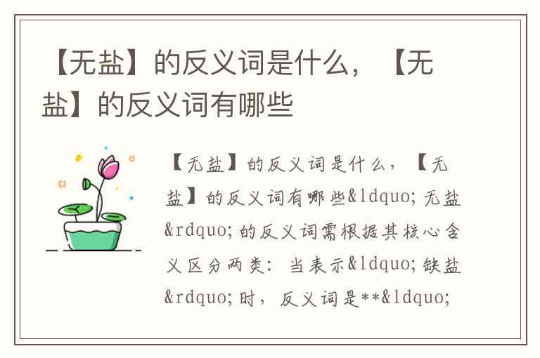 【无盐】的反义词是什么,【无盐】的反义词有哪些