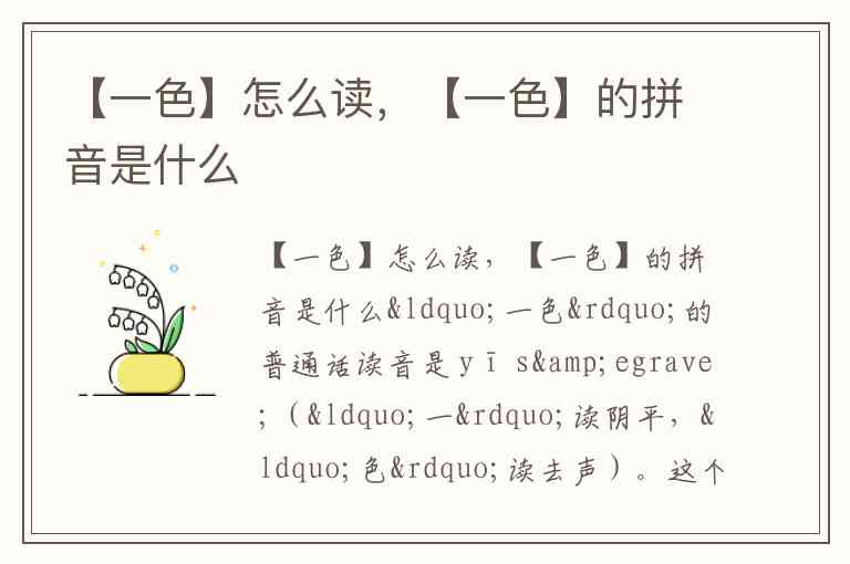 “一色”的普通话读音是 yī sè(“一”读阴平,“色”读去声)。