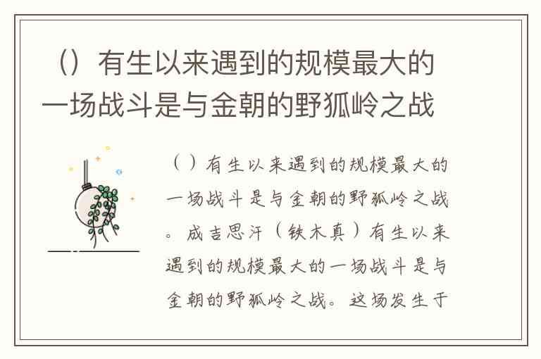 ()有生以来遇到的规模最大的一场战斗是与金朝的野狐岭之战。