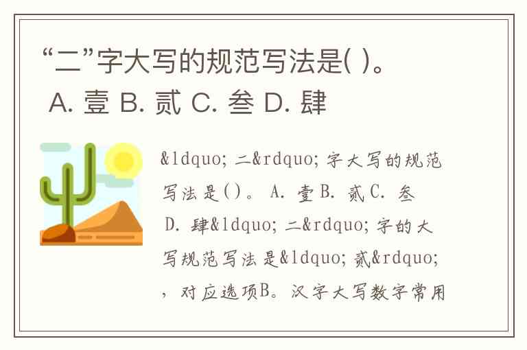 “二”字大写的规范写法是( )。 A. 壹 B. 贰 C. 叁 D. 肆