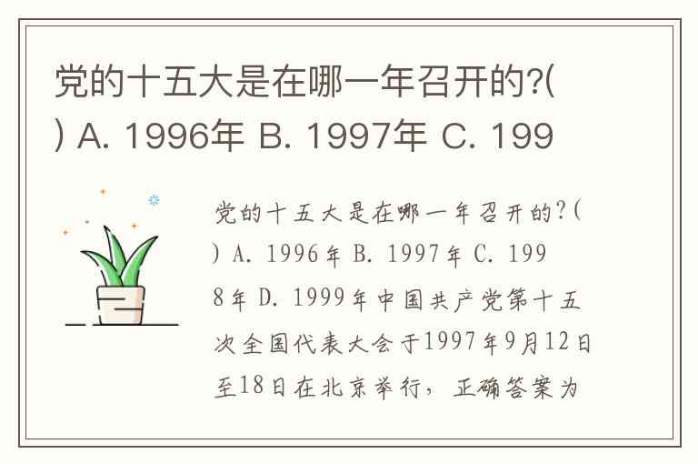 党的十五大是在哪一年召开的?() A. 1996年 B. 1997年 C. 1998年 D. 1999年