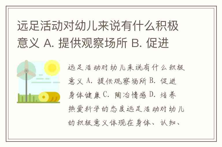 远足活动对幼儿来说有什么积极意义 A. 提供观察场所 B. 促进身体健康 C. 陶冶情感 D. 培养热爱科学的态度