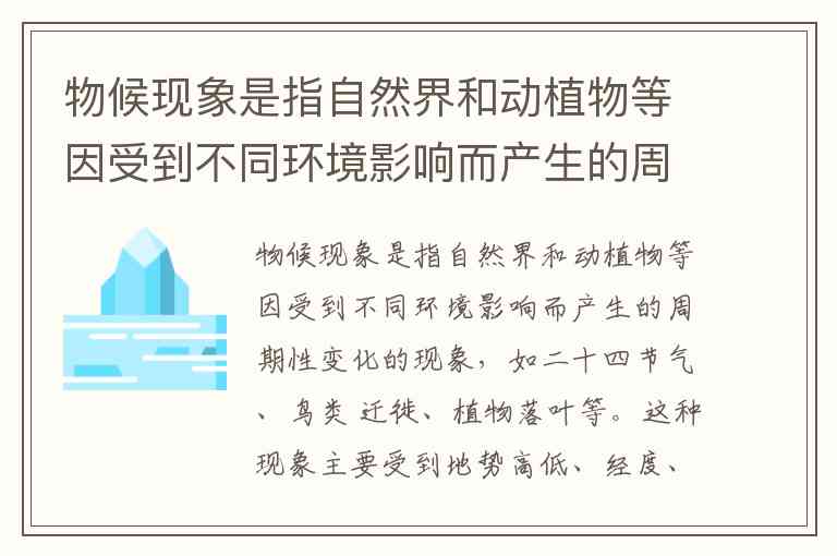 总结:纬度通过影响太阳辐射总量,决定了不同地区的热量条件,进而导致物候现象的空间差异。高纬度地区因热量少,季节转换更早(如西北八月飞雪),低纬度地区则相反,这正是“北风卷地白草折,胡天八月即飞雪”所揭示的地理规律。而其他选项分别对应地势、天文或时间因素,与题干要求的“纬度不同”不符。