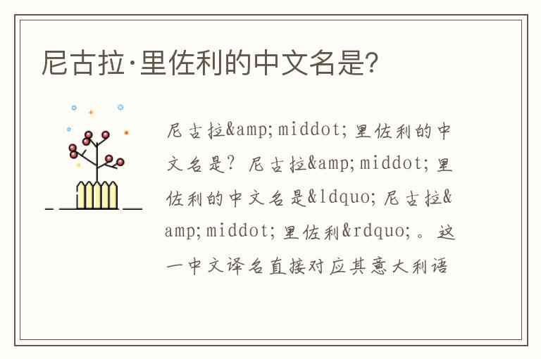 尼古拉·里佐利的中文名是“尼古拉·里佐利”。这一中文译名直接对应其意大利语原名“Nicola Rizzoli”,由音译而来并保持了原名的结构。作为国际足坛知名裁判,他曾执法2014年巴西世界杯、2016年法国欧洲杯等重大赛事,其中文名在中文体育报道中被广泛使用。需要注意的是,部分非正式文本可能出现“尼古拉里佐利”等连写形式,但标准译法应为带间隔号的“尼古拉·里佐利”。
