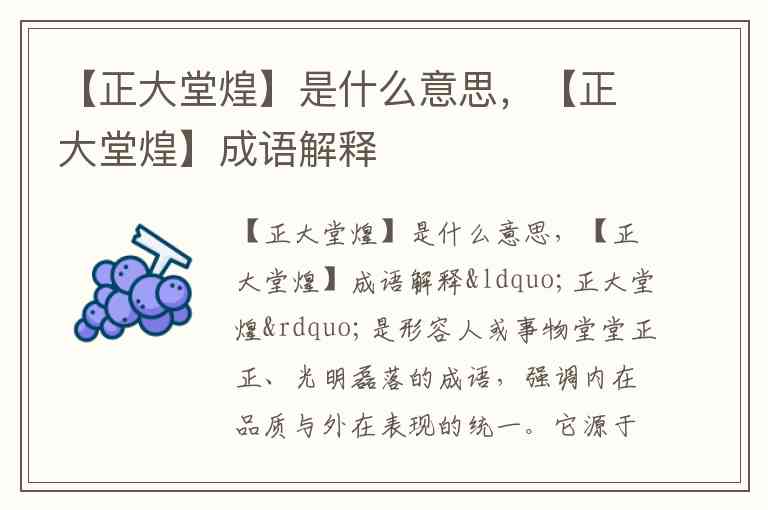【正大堂煌】是什么意思,【正大堂煌】成语解释
