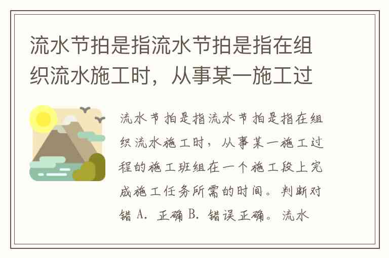 流水节拍是指流水节拍是指在组织流水施工时,从事某一施工过程的施工班组在一个施工段上完成施工任务所需的时间。判断对错 A. 正确 B. 错误