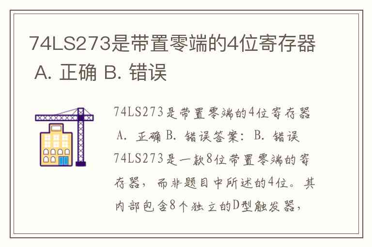 题目混淆了该芯片的位数规格,因此描述不正确。在数字电路设计中,需特别注意寄存器的位数与系统数据宽度的匹配,例如8位微处理器系统通常选用74LS273作为外围接口的锁存器,而4位系统可能更适合74LS175等4位寄存器芯片。