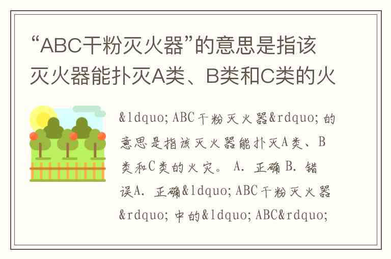 “ABC干粉灭火器”的意思是指该灭火器能扑灭A类、B类和C类的火灾。 A. 正确 B. 错误