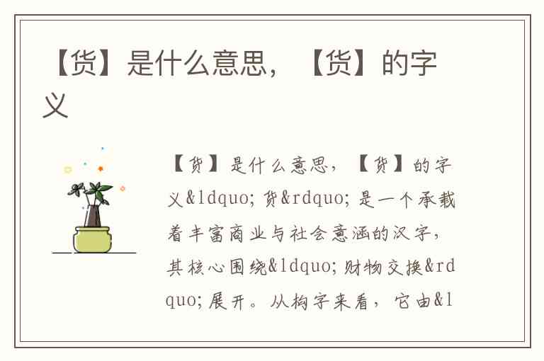 “货”是一个承载着丰富商业与社会意涵的汉字,其核心围绕“财物交换”展开。从构字来看,它由“贝”(古代货币)和“化”(变化)组成,直观体现“可转化为钱币的财物”这一本质。《说文解字》明确释为“财也”,最初涵盖金玉、布帛等贵重物品,《周礼》中甚至以“金玉曰货”区分于“布帛曰贿”,可见其早期指向高端财富[2]。